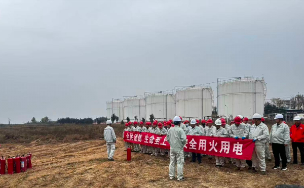 为响应中陕核集团2025年“消防宣传月”活动号召,落实消防安全“四个能力”建设要求,迎接第34个“119”消防日及第9个消防宣传月,11月6日下午,中陕核华浩轩公司在成品油储罐区组织开展消防灭火实操应急演练,公司全体干部职工及外包作业施工单位共同参与。