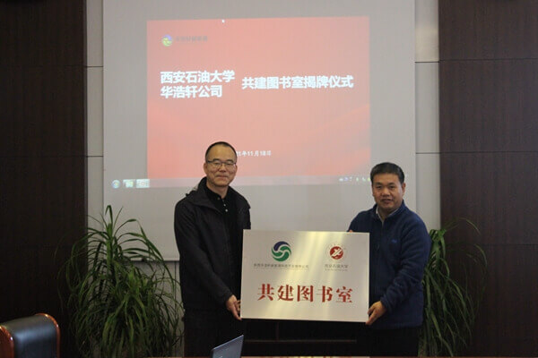 2021年11月18日,华浩轩公司和西安石油大学举行共建职工书屋揭牌仪式。西安石油大学工会副主席刘陕军、人文学院党委副书记盛丹、音乐系办公室主任王海燕、工会办张丽娜;华浩轩公司党总支书记、董事长王峰及工会办、综合办公室等部门的负责同志参加了揭牌仪式,揭牌仪式由副总经理、工会主席刘彦仁主持。