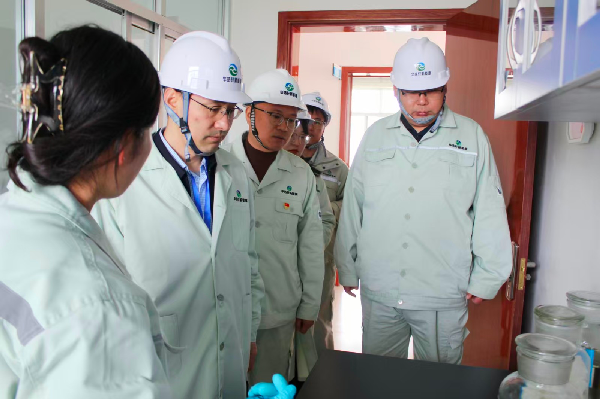 指导组一行深入生产厂区,实地察看了一期、二期装置现场和配套生产线。重点督导了一期装置运行、产能提升及安全生产工作,对公司资产管理、审计整改、项目投资等进行了调研指导。